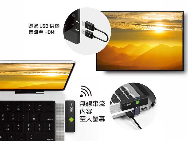 IPEVO CAST 延伸配件組是專為 IPEVO CAST 無線螢幕分享設計的延伸配件,帶來更靈活的外接體驗。