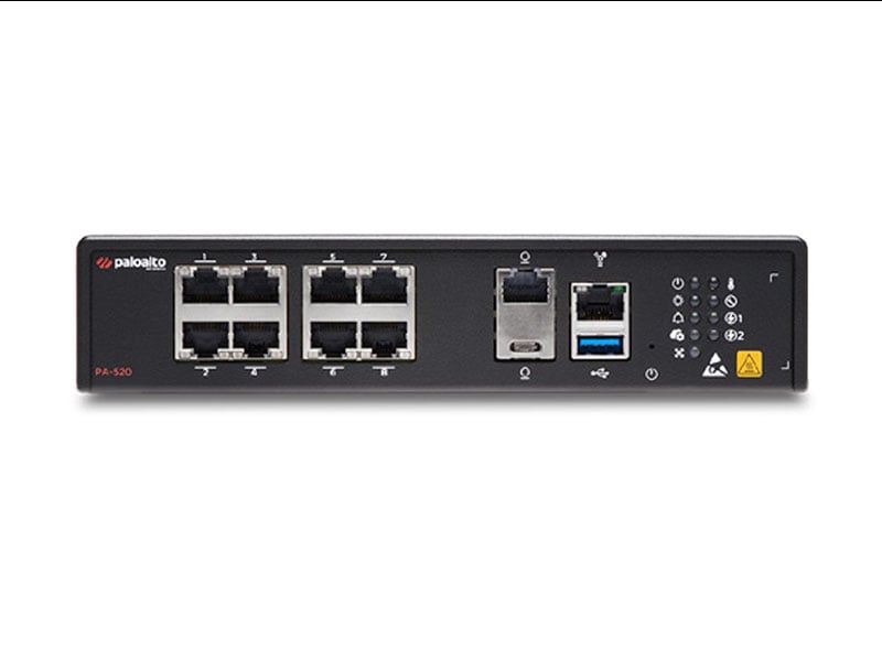 Palo Alto Networks PA-520 採用多核安全架構,提供高達 1.8 Gbps 的威脅防護效能。其靈活的 Gigabit RJ-45 埠設計與 App-ID 技術能精準識別應用流量,確保網路可視性與穩定性,適合中小型企業及分公司部署高效能防火牆。